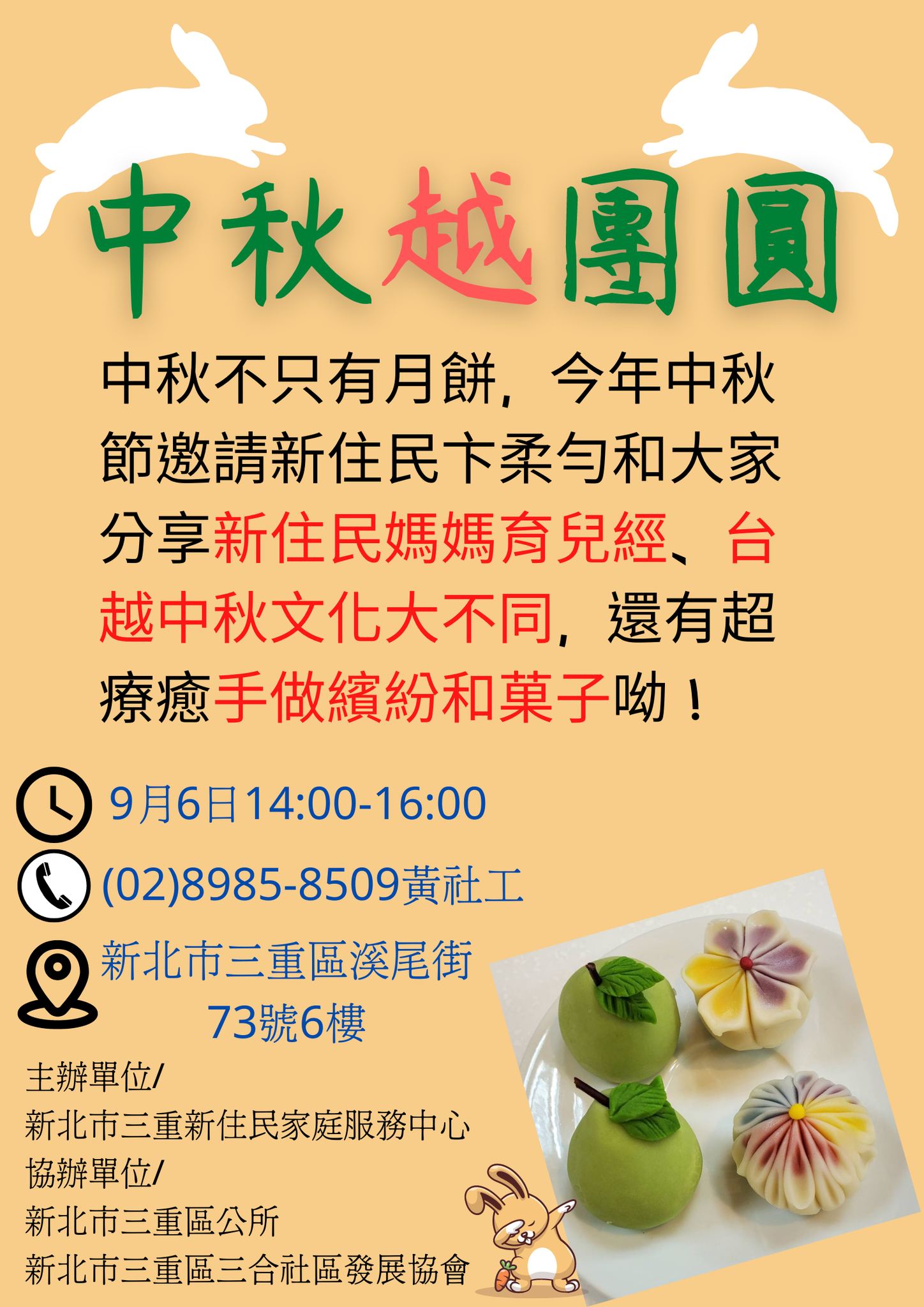 活動地點:新北市三重區溪尾街73號6樓(三重新住民家庭服務中心)