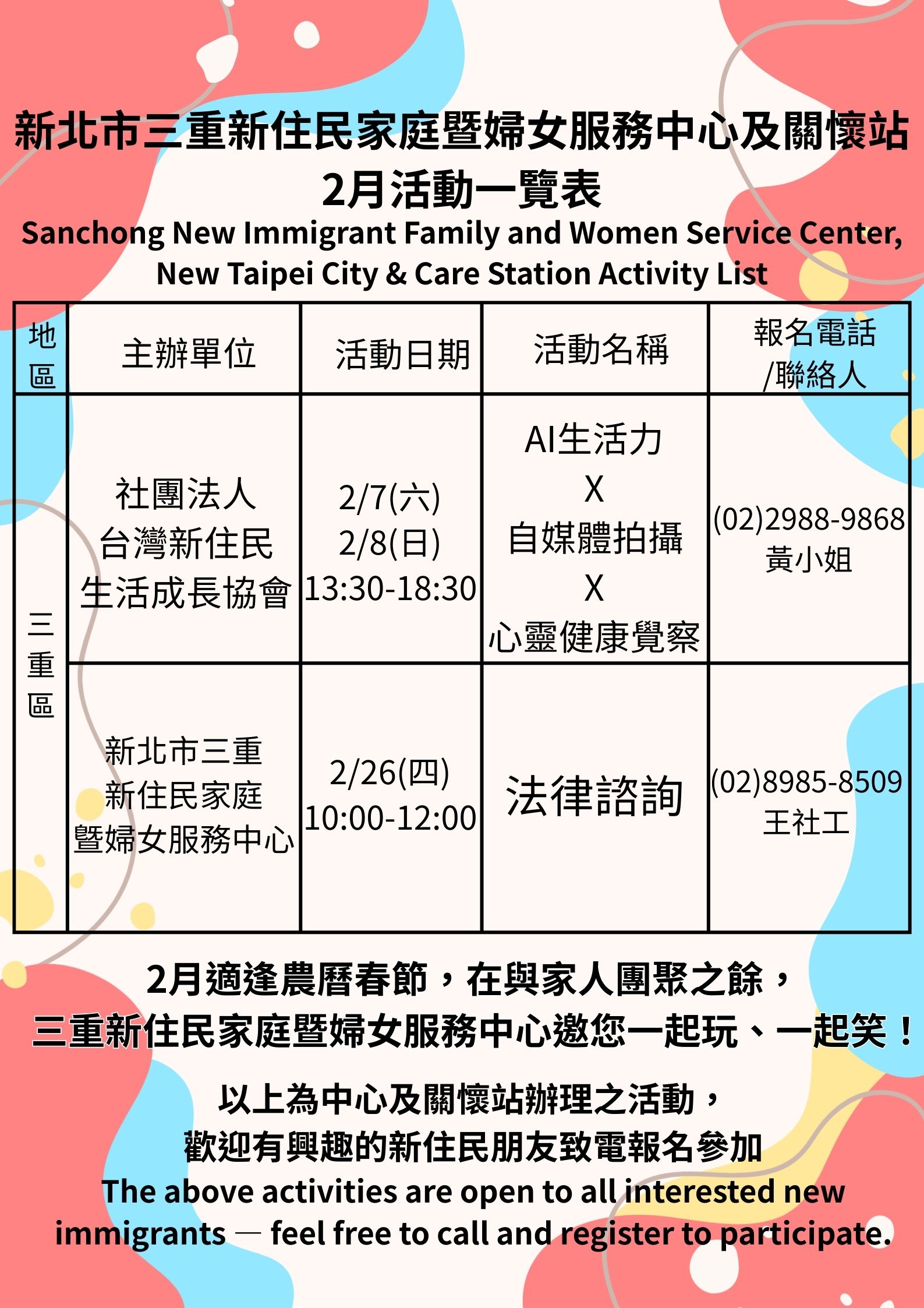 New Taipei City Women and Family Service Center and Sanchong District Care Station – Activity List